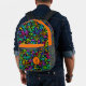 Kick off your back to school in style with this funky neon orange squiggle backpack. This fun, stylish custom backpack features a very bright and colourful doodle design on a black background. A monogram initial text template is included - use it to personalize your bag or remove it, the option is yours. This backpack also fluorescent orange colour block strip at the top of the front pocket, complimenting the monogram. Feel free to change these to suit your style!
