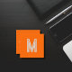 Square Business Cards with a neon orange solid color background and a white font . Simple and trendy design by Alma Wad Personalize it with your bold monogram now.
