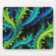 Swirling patterns of vivid green and blue resemble dynamic waves or splashes set against a deep black background