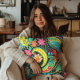 Neon Paisley Black Pink Blue Yellow Throw Pillow