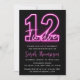 Neon Pink 12th Birthday Invitation
