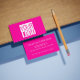 Business card in neon pink (#FF0099) solid color background and a cover logo .Personalize both sides now . Modern and trendy design by Alma Wad .It comes 100 in a pack .