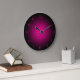 This mysterious, gothic style wall clock features a black colored background with bright neon pink numbers printed in a whimsical font. A matching neon pink gradient extends from the center where it appears most dense, and gradually fades.