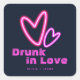 Neon Pink Hearts Drunk in Love Wedding Square Sticker