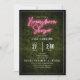 Pink neon sign inspired honeymoon shower script over green boxwood inspired background with custom white text.