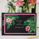 A modern yet retro themed neon pink tropical botanicals on a black background. A beautiful wedding design ideal for summer. Perfect neon pink tropical plants design featuring palm trees, pink Hibiscus flowers and Plumerias Frangipanis flowers. Black, pink, and green colors dominate this tropical pink neon design. The modern calligraphy typography contrast perfectly against the black and pink wedding themed design. A classy elegant wedding guest book design with modern simple elements. Matching wedding stationery items and other wedding invite formats are also available.