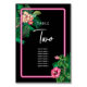 A modern yet retro themed neon pink tropical botanicals on a black background. A beautiful wedding design ideal for summer. Perfect neon pink tropical plants design featuring palm trees, pink Hibiscus flowers and Plumerias Frangipanis flowers. Black, pink, and green colors dominate this tropical pink neon design. The modern calligraphy typography contrast perfectly against the black and pink wedding themed design. A classy elegant wedding table number card design with modern simple elements. Matching wedding stationery items and other wedding invite formats are also available. Customize the number and purchase each tables number individually according to how many table numbers you need.
