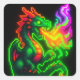 Neon Pixel Dragon – Retro Arcade Flame Design Square Sticker