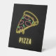 Pedestal stand features Neon look pizza slice with text. This design is great for home parties or business use including pizzerias and food trucks!
