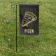 Outdoor yard flag features Neon look pizza slice with text. This design is great for home or business use including pizzerias and food trucks!