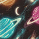 Blast off to a vibrant galaxy with this eye-catching space-themed wallpaper. Neon planets and crescent moons illuminate a starry expanse, creating a captivating and futuristic atmosphere. This peel and stick wallpaper is easy to apply and remove, making it perfect for adding a touch of cosmic wonder to bedrooms, game rooms, or any space that needs a touch of stellar style.
