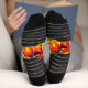 This fun Halloween socks are bright and colorful. The small print is crisp and shows the fun details. The softness of the socks feels nice on my feet and ankles. .