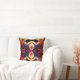 A brightly-colored throw pillow featuring kaleidoscopic views of neon lights.