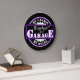 Neon Purple White Garage Text on Black Clock