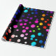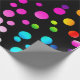 Neon Rainbow Polka Dots on Black Wrapping Paper