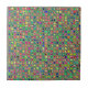 This product is made from a unique textured mosaic square tiles pattern in neon green, blue, yellow, red, and other vivid rainbow colors.