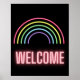 A neon rainbow and big "welcome" text creates a message of inclusivity for all in this poster sign that can be used for businesses, schools, clubs and more.