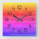 Neon Rainbow Wood Pattern Square Wall Clock