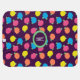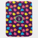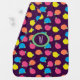 Stylized roses in bright neon pink, blue, yellow, and coral with neon green leaves are spangled across a deep purple background to create a fun floral pattern. Customize this baby blanket with your little one's initial to make a unique gift.