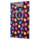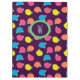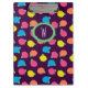 Stylized roses in bright neon pink, blue, yellow, and coral with neon green leaves are spangled across a deep purple background to create a fun floral pattern. Customize the monogram on this clipboard with your initial to make it uniquely your own.
