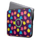 Stylized roses in bright neon pink, blue, yellow, and coral with neon green leaves are spangled across a deep purple background to create a fun floral pattern. Customize the monogram on this sleeve with your initial to make it uniquely your own. This sleeve is available in 10", 13", and 15" sizes to fit a variety of laptops, netbooks, and tablets.