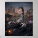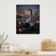 A deadly neon scorpion advances across a hostile futuristic desert, forged from segmented titanium armor, glowing plasma veins, and razor-sharp cybernetic claws. Its arched tail and charged stinger radiate amber, cyan, and crimson light, creating a fierce contrast against dark metallic plating. Around it, black sand dunes, abandoned reactor towers, broken pipelines, warning beacons, drifting dust, and heat haze build a tense cinematic world. This bold predator design blends danger, technology, and survival energy, ideal for gaming rooms, offices, and collectors who love powerful sci-fi creatures.