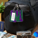This awesome luggage tag features a digitally created image that resembles a series of gentle waves rippling against a calm shore. The waves are vivid neon shades of green, pink and blue and have a 3D quality. There is customizable text on the back fo the luggage tag allowing you to personalize it with your name and any other text of your choice.