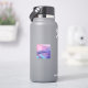 Neon pink and cobalt bridge arcs over a luminous chasm with a shimmering river, blending sci fi wonder with dreamlike surrealism and a bold cyber glow.