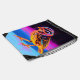 A striking neon illustration of a sparrow adorned with glowing rings and vibrant accents, set against a bold synthwave-inspired backdrop of purples, blues, and pinks. This retro-futuristic bird artwork is perfect for fans of vaporwave aesthetics, glowing digital art, and surreal animal portraits.