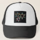 This cap has a design of three Jewish stars in neon colors on a black background.