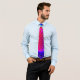 I bought this tie for a cosplay of Haruhi Fujioka for Halloween and anime conventions. It feels very nice and silky. It's my first tie ever, and I'm a pretty big fan since I always wanted a tie. It was longer than I expected it to be (quite a plus), but the purple stripe was also thinner than I expected it to be (a slight bit of a downer, but I don't mind too much). I had never used Zazzle before, but I am very impressed with the shipping time. I was looking for places to get a tie like this so last minute since the ties like this on Amazon were incompatible with Prime. Thus, I ended up here. I paid for express shipping, expected delivery October 30-31, and it arrived in the morning on the 30th. Very impressed. I might just use Zazzle again. The print job was okay. The colors were perfect, but as you can see in the pictures, the stripe was a little off-center, and there was a kink in the stripe around where it transitions from the wide end to the thin end. It should work perfectly for my cosplay, but it was a little too carelessly print to be a very professional tie.
