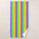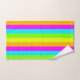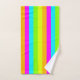 Standard three-piece bathroom towel set with bright and colorful neon stripes.