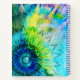 A brightly painted blue green and yellow abstract backdrop with a sketched sunflower where above that is a green box where you can personalize your notebook. Modern artsy