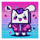 1980s-inspired kawaii creature bathed in vibrant neon colors.