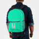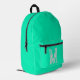 Printed Backpack with a neon turquoise solid background and bold white font Simple and trendy design by Alma Wad. Personalize it with your monogram now.A neon turquoise backpack appeals to teen students for style, young adults for fashion and uniqueness, and parents seeking a practical, visible school bag for kids.