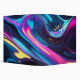 This artwork features smooth, flowing lines in bright neon colors like pink, blue, and yellow against a dark background. The colors blend and curve, creating a glowing, liquid-like effect that feels both modern and calming. It looks like a mix of light and motion captured in an abstract form.
