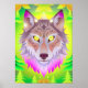 Neon Wolf in Abstract Forest Poster