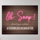 A neon sign with the text "Oh Snap!" Background is wood plank. Text is white.