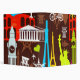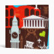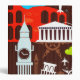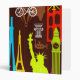 This design features a pattern of brightly colored icons from around the world.