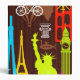 Neon World Travel Pattern 3 Ring Binder