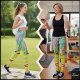 Stylish woman's legs in bright striped leggings, highlighting a chic 2 IN 1 design perfect for any occasion.