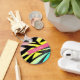 A keychain featuring a neon zebra print design. Personalize with your name.