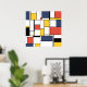 Neoplasticism style abstract art. Digital painting of black lines and red, blue, yellow, black and white rectangles. Made from the scratch. Good to decorate an office or a home wall.