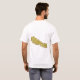 An editable title and slogan accompanies the white symbols on an ireegularly shaped red background with blue border of the Nepalese flag on the front of this t-shirt. The back displays a detailed map of Nepal.