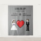 This fun and geeky, yet simple and chic backdrop features a bright red 8-bit heart and names of bride and groom and 8-bit bride and groom characters with purple accents gazing at each other against a silver grey background. Customization available (hair color / skin tones / color accent) - just contact me!