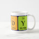 Nerdy spelled out as N Er D Y (Nitrogen Erbium Deuterium Yttrium) on a mug for the scientist in you.