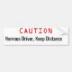 Nervous Driver, keep distance funny Bumper Sticker. Funny Bumper Sticker & safety Message for Auto and driving safety. funny bumper stickers