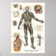 Anatomical and physiology poster of the nervous system. Shows the spinal nerves, brachial plexus, sciatic nerve and sympathetic ganglia. Sympathetic nervous system. Lobes of the brain.