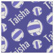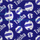 Sport personalized netball with blue stripe pattern sporting design fabric. White and blue netballs and dark blue background color which can be changed if required. Ideal for netball players, coaches, and netball fans. Customize with your own choice of name, currently reads Taisha. Graphic art and designed by Sarah Trett for www.mylittleeden.com