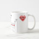 Netball player stick figures, with red hearts and funny quote on coffee mug. Would make a great gift idea for a netball coach, player or fan.